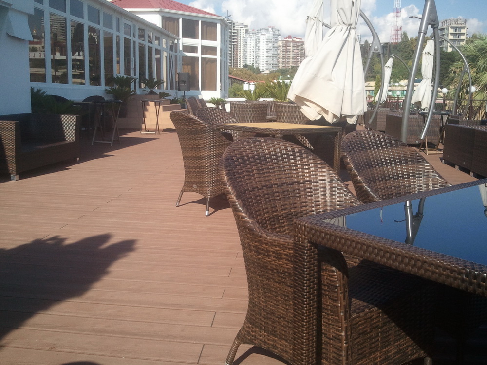 Когда будете в Сочи, обязательно посетите данное кафе, чтобы убедиться в качестве террасной доски Woozen!